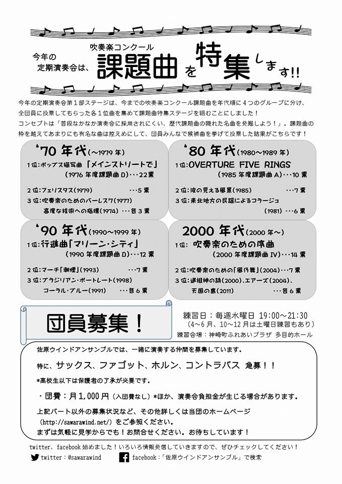 ・吹奏楽コンクール 課題曲特集 曲は各年代ごと団員投票で決定→詳細はこちら
